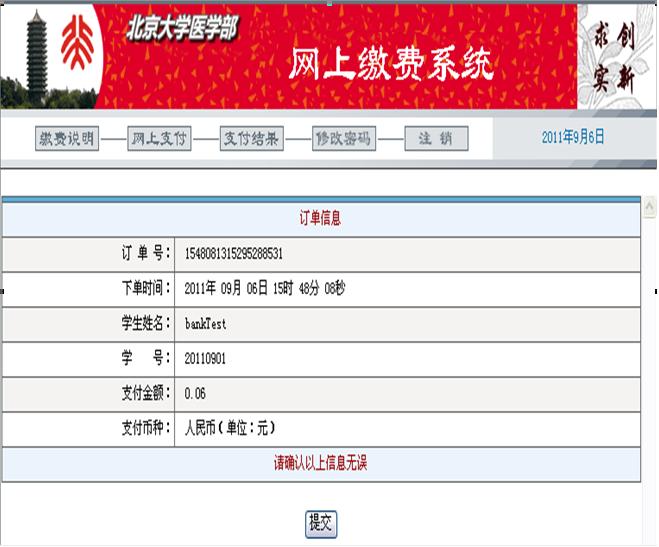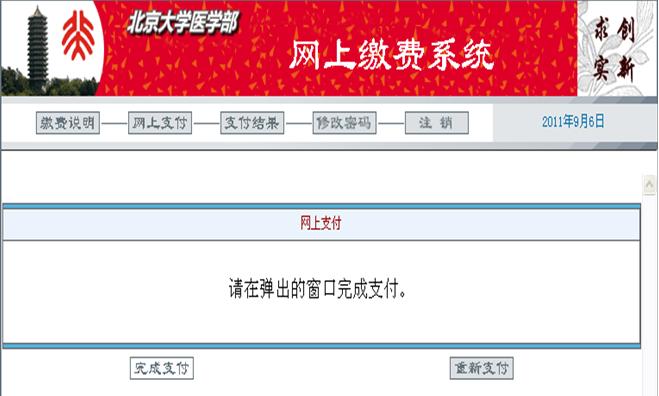 1.进入学生网上缴费系统:登录http://student.bjmu.edu.cn