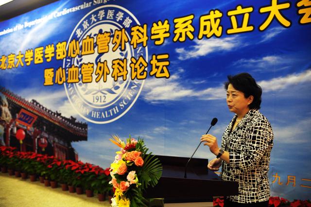 随后,王宪副主任为成立大会致辞。王宪副主任从学科发展的角度肯定了心血管外科学学系成立的重要意义,并对学系今后的发展提出了要求,鼓励学系加强学科基本建设,在教学、临床医疗、科研等各方面合作创新;努力打造一支优秀的心血管外科学团队。306医院副院长牛忠英和知名心血管专家陈明哲教授分别代表教学医院和老一辈心血管专家为学系大会致辞,在祝贺学系成立、支持学系各项工作开展的同时,对学系提出了新的希望和要求。
