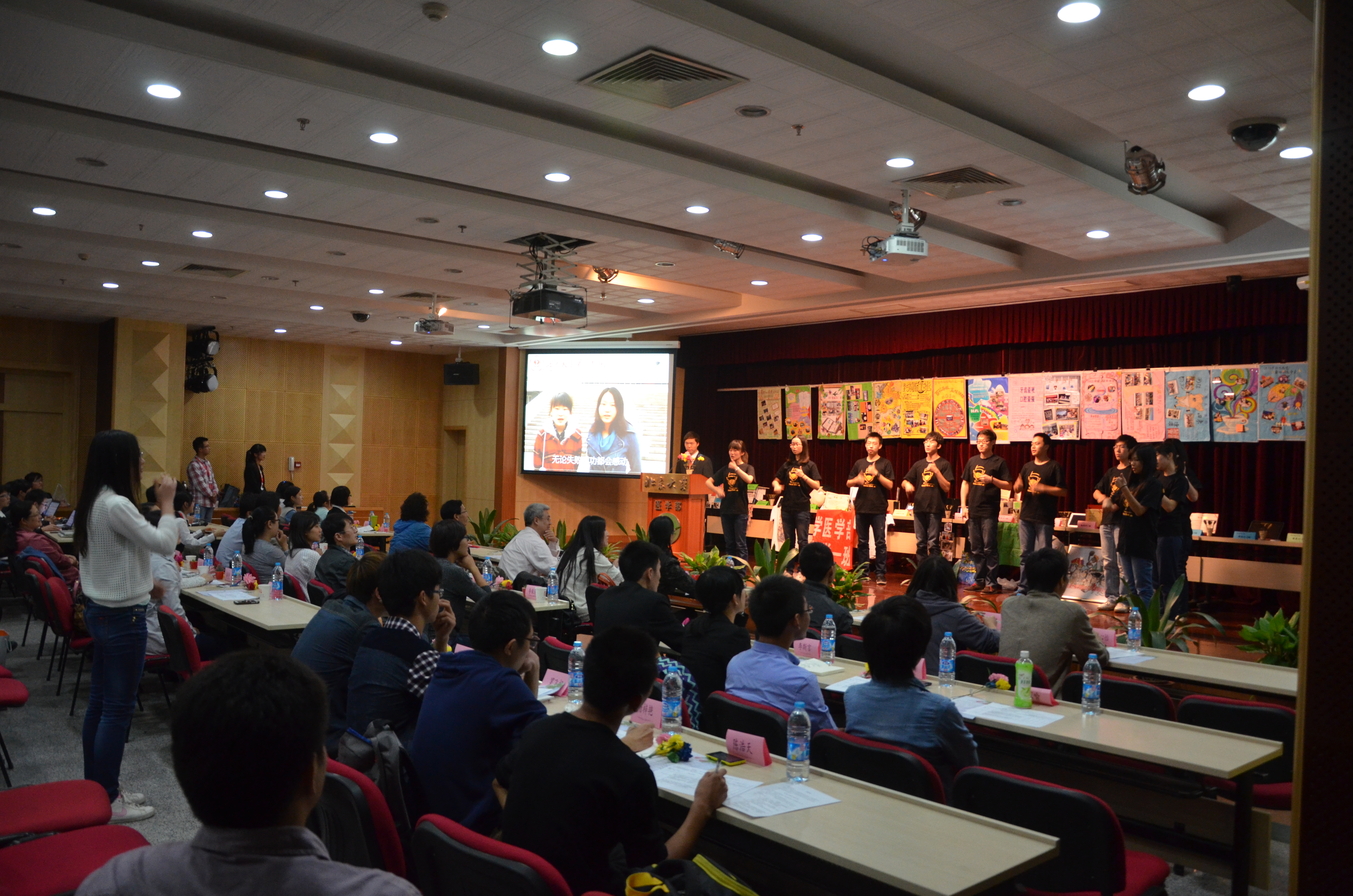 为营造集体育人环境,以评促学、以评促建, 教育处、学工部于2013年10月8日晚举办了医学部2012-2013学年优秀班集体评审会。学工部常务副部长、教育处副处长李红,保卫处处长赵成知,总务处副处长张卫光,团委书记焦岩,以及各学院、临床医院学生工作负责老师莅临活动现场并担任评委。此外,担任评委的还有来自医学预科2013级各班的班级骨干。参选班级代表与来自各学院(部)的学生观众近200余人到场参会,领略并学习优秀班集体的经验和风范。