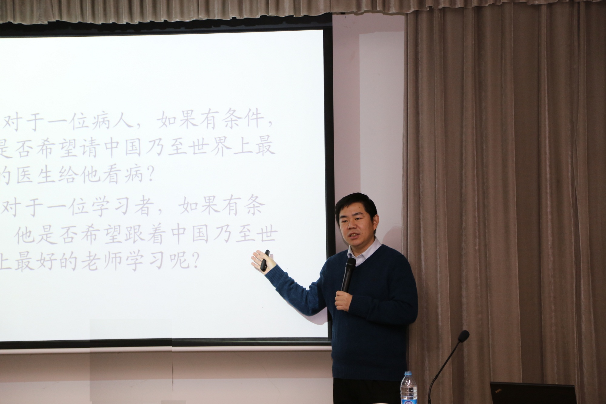 20131126医学部教育处邀请了大学教育学院副院长尚俊杰教授在逸夫楼114教室进行了“信息技术环境下的未来高等教育”主题讲座,医学部副主任王宪、教育处副处长续岩、督导专家、各学院(部)教师及医学教育研究生共80余名人聆听了本次讲座。