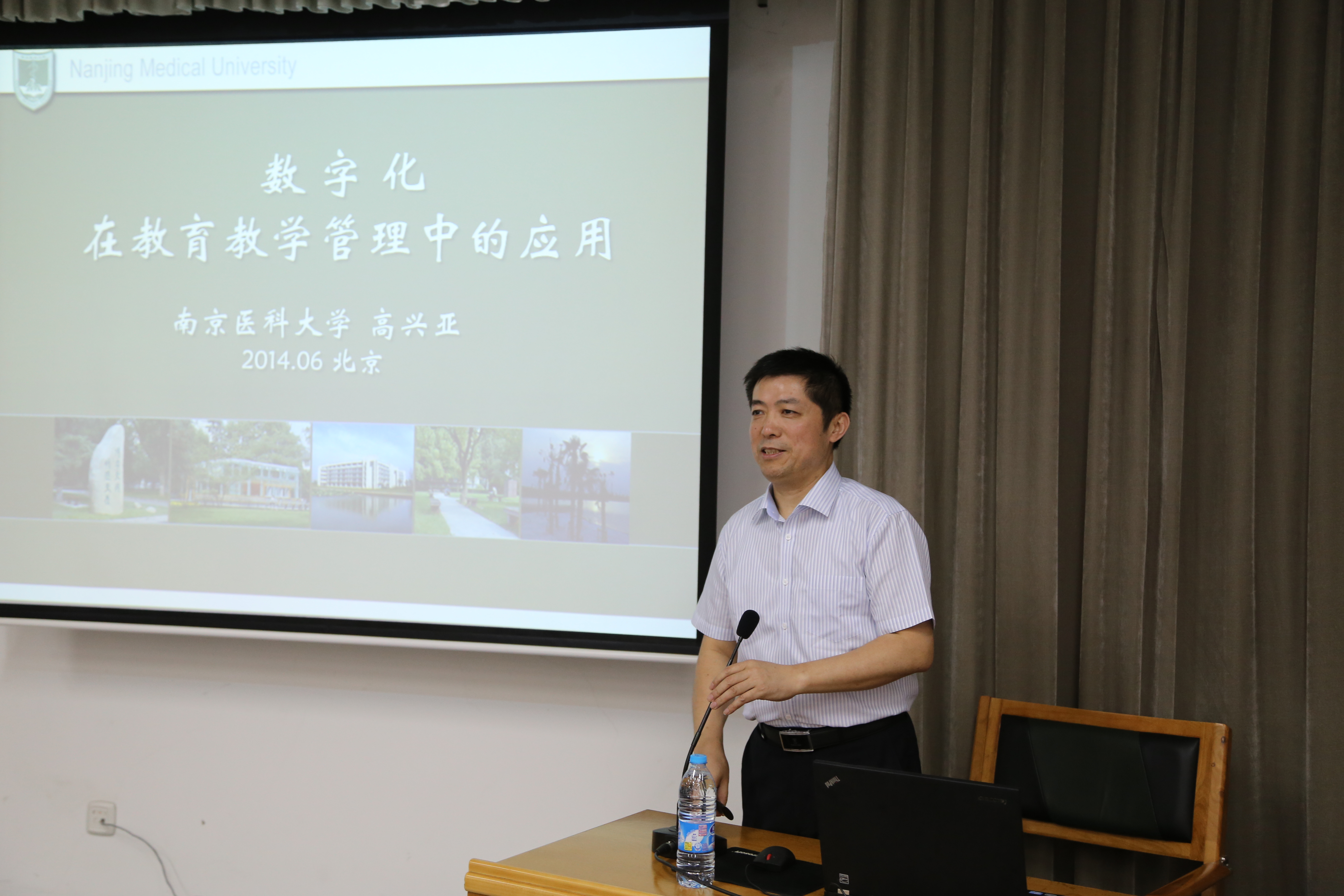 2014年6月24日下午在逸夫楼114,医学部教学发展中心邀请南京医科大学教务处处长高兴亚教授介绍“数字化在教育教学管理中的应用”。医学部副主任王宪、医学部主任助理王维民及来自医学部各学院(部)、教学医院及其它各单位的60余名教师参加了本次活动。