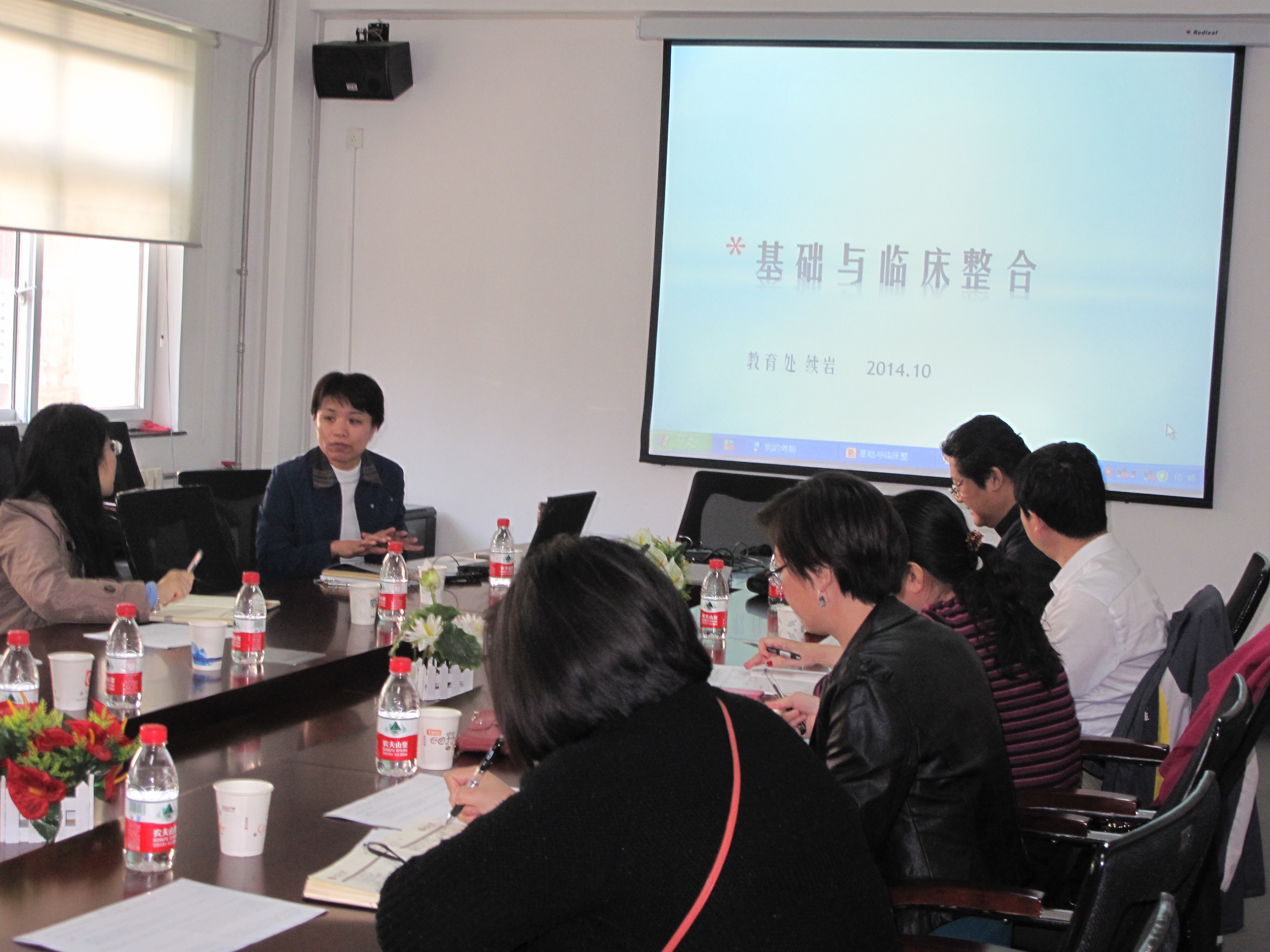 2014年10月14日上午,医学部教育处在行政楼214会议室组织召开基础与临床课程整合工作研讨会。基础医学院教学院长王韵、北京大学第一医院教学院长李海潮、教育处处长王颖以及十余名教学骨干参加了此次会议。会议由医学部教育处续岩副处长主持。