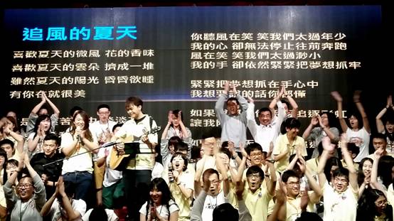 欢迎仪式暨联欢会结尾两岸师生共唱歌曲