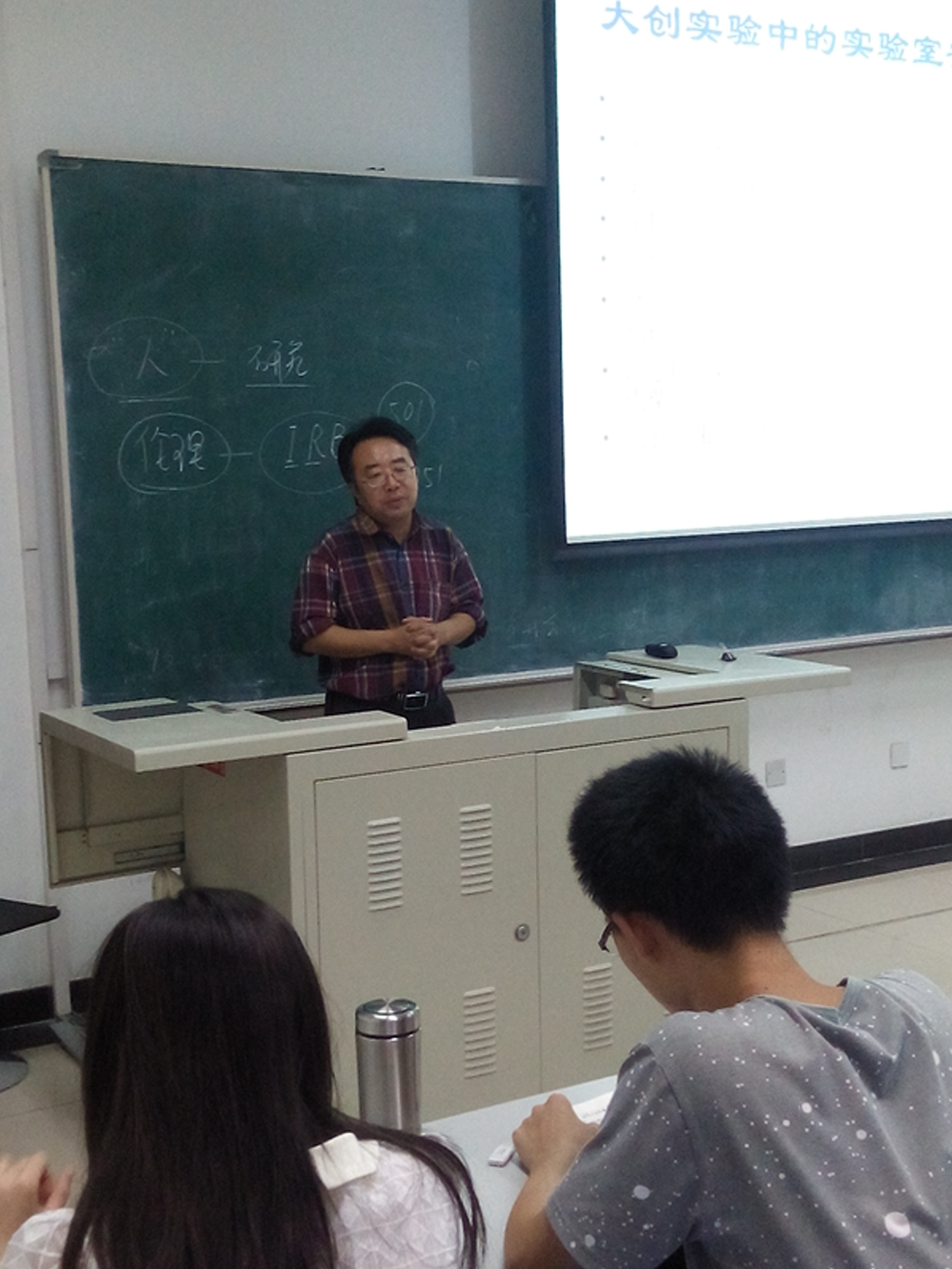 随着2015年度医学部大学生创新实验项目立项的确定,参加的同学们陆续开始自己的项目,在项目运行中同学们遇到了一些科研伦理和实验室安全方面的问题。为了让同学们初步了解科研伦理,提高安全意识,6月25日晚,大学生创新项目(简称大创)学生志愿组特邀请北京大学医学人文研究院副院长、医学伦理学博士生导师丛亚丽教授和北京大学药学院实验教学中心副主任胡新老师在逸夫楼217教室就相关问题与同学们进行探讨。超过40名学生参加了本次讲座,莅临现场的还有医学部设备与实验室管理处和教育处相关老师。