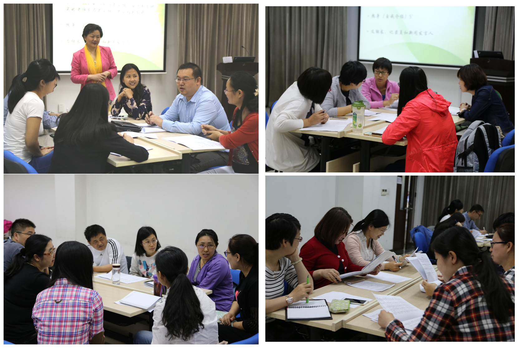 随后,程老师带领老师们就“如何做教学实验研究”进行了深入的探讨。程老师先邀请医学部免疫学系的初明老师介绍了他们的教改课题——八年制医学生免疫学实验教学改革的探索的研究经过,在免疫学实验教学过程中,他们发现传统实验教学不能促进学生创新思维、实践操作和科研思维能力的培养;经过调研和严密设计,老师们决定优化实验内容,通过搭建创新实验技术平台、结合网络学习等手段,努力提高学生的科研综合素质,并对改革效果进行评价、分析。之后,各组老师从选题、准备资料、研究实施、结果分析等研究的全过程,就一个研究问题进行研究设计并分享展示。老师们的选题包括:对分课堂与传统课堂教学效果的比较研究,如何设计同一个班级翻转课堂教学效果比较研究,采用电子书包教材与传统纸质教材学习效果的比较研究等。