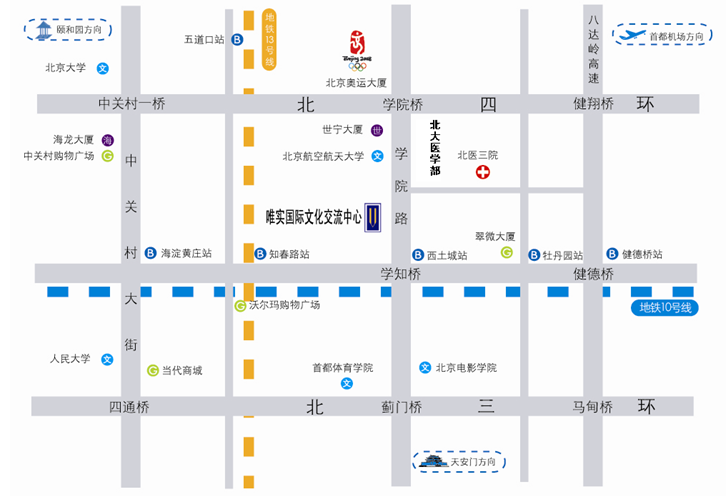 1. 北京唯实国际文化交流中心距首都机场27公里,北京火车站15公里、北京西客站12公里、北京北站4公里、北京南站15公里,紧邻地铁10号线西土城站。