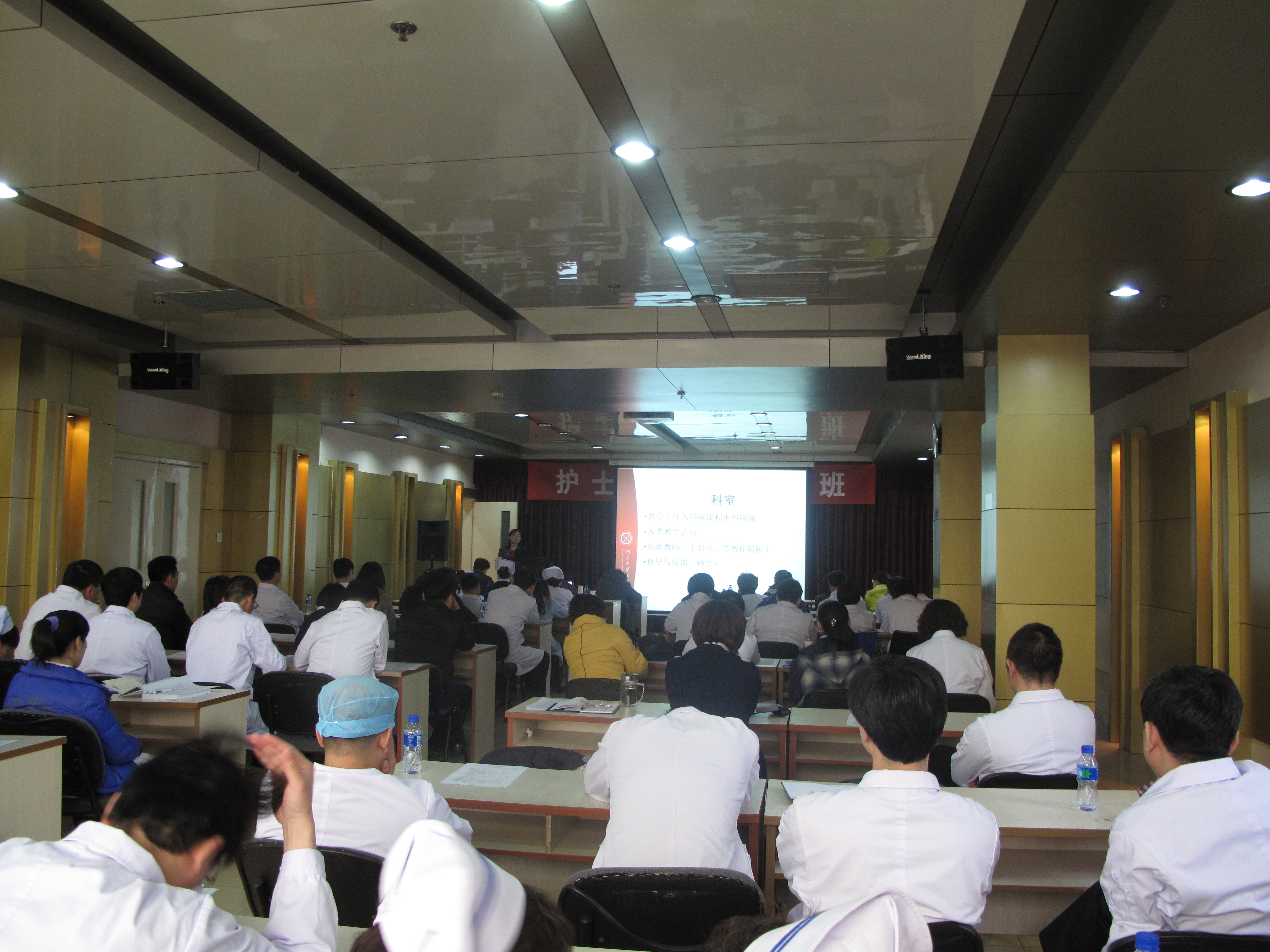继2013年3月底的专题培训后,开云电竞服务好于4月19日再次组织教育教学专家团队赴天津市第五中心医院进行专题教师培训活动。北大医院儿科教学主任齐建光、计算机网络中心副主任周国鹏、北医三院内科教学主任韩庆烽、医学部教育处副处长、学工部常务副部长李红、医学部副处长续岩参与了授课,塘沽医院各科主任及部分骨干医师80余人参加了全天的培训活动。塘沽医院科教科主任赵万涛主持本次培训。
