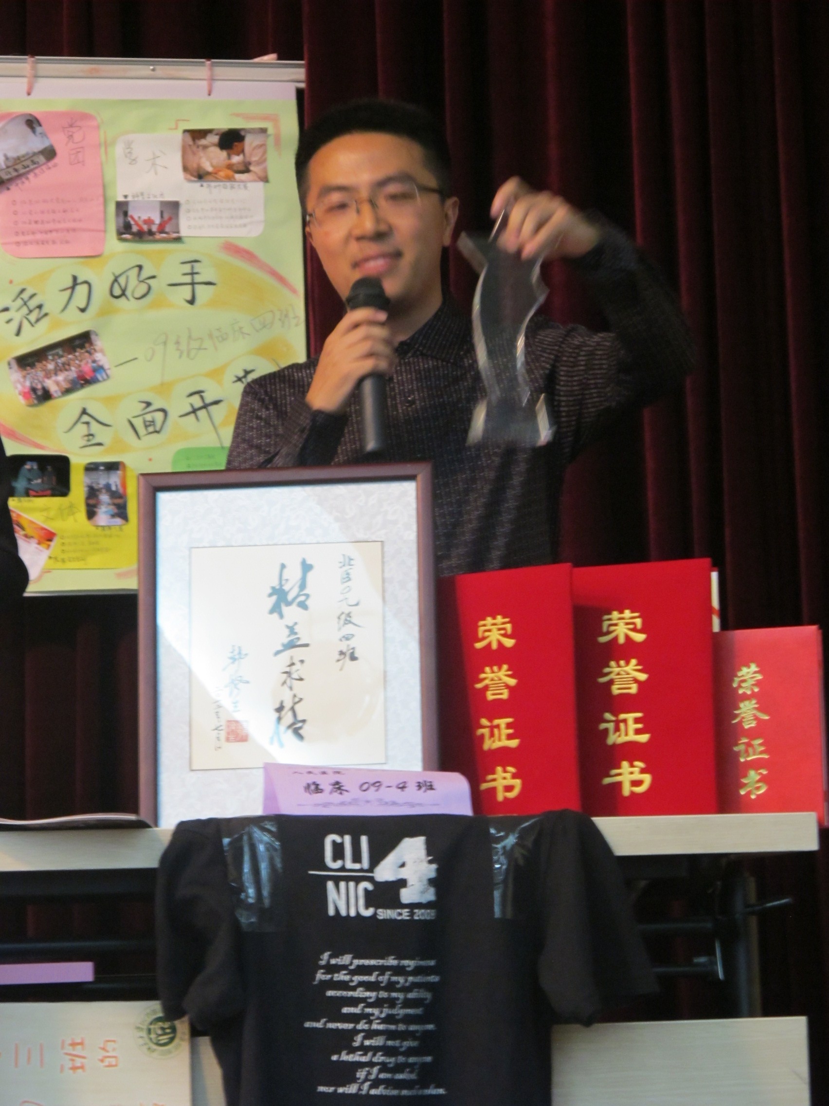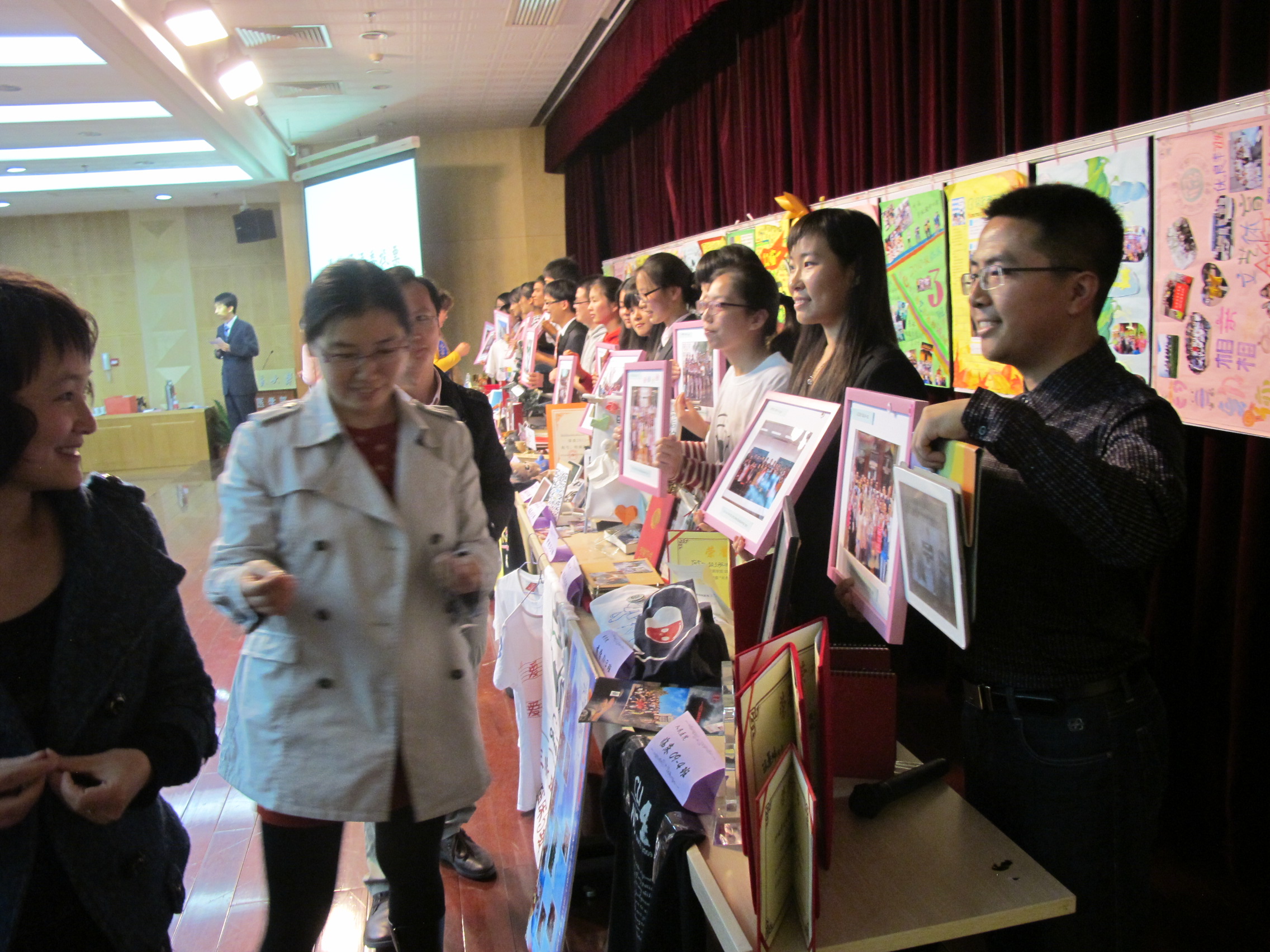 展示环节最后,老师评委和学生评委依次上台,将以立体贴纸为选票的纸花贴在由评审会会务组工作人员事先为各班级同学准备的礼物——班级合影的相框上。在台上各班同学的拉票声和场下观众的欢呼生中,评审会的气氛被推向了高潮。经过激烈的角逐,本次评审会共评选出6个北京大学优秀班集体、4个北京大学先进学风班,并产生了医学部级和学院级优秀班集体。