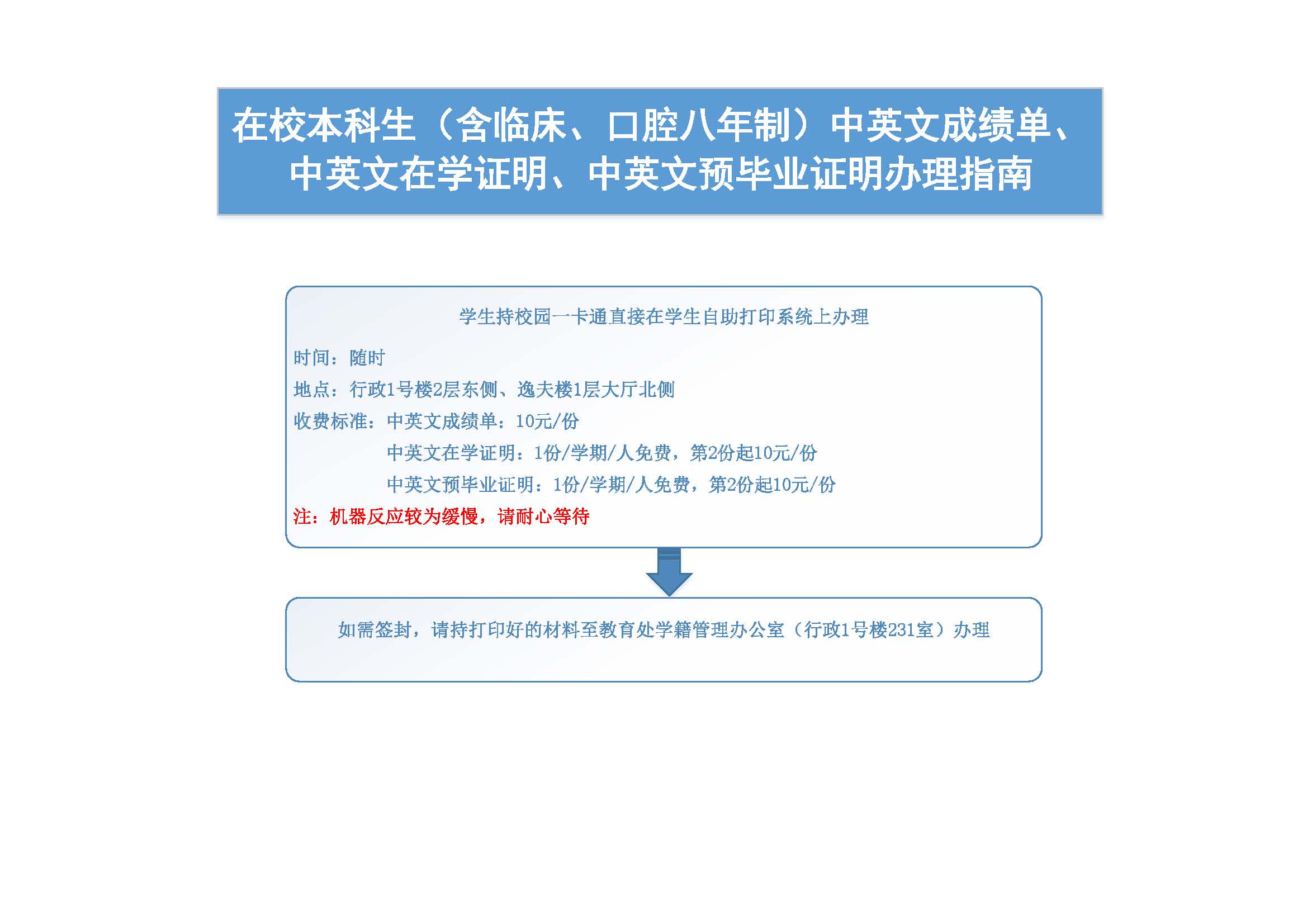 在校本科生(含临床、口腔八年制)中英文成绩单、中英文在学证明、中英文预毕业证明办理指南