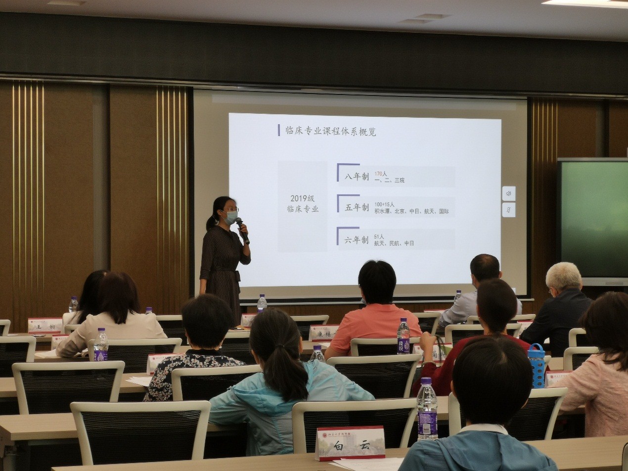 其次,进行了三项专题汇报。医学部教育处刘虹处长介绍了前期工作基础,器官系统课程体系的框架、组织模式和教学团队的工作内容、管理与评估,她指出由于本轮教改将于2019级学生起启用,时间紧、责任重、事情多,每位参与人员都需要贡献大量的时间和精力。基础医学院王韵副院长详细地介绍了基础医学专业教学改革方案,在此基础上提出对临床医学专业“基础医学综合”课程的建议方案以及基础医学院对临床教改器官系统课程建设的教学团队支持。北大第一医院李海潮副院长以呼吸系统的5周教学为例,介绍了器官系统课程的设计方案及教学安排。