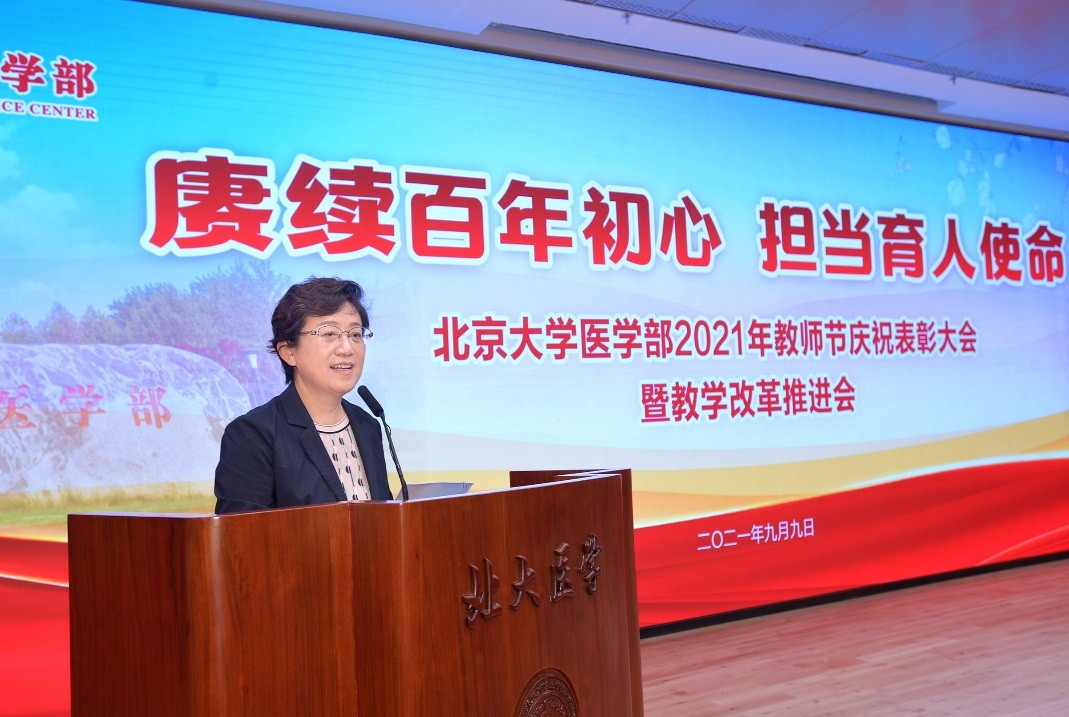 她指出,今年教师节的主题是“赓续百年初心,担当育人使命”,意义特别。北大医学119年的发展历程中,有很多德艺双馨的教师典范。正是在他们的带领下,北大医学的教师们怀着对教育的热爱与情怀,奠定了北大医学发展的坚实基础,为新时代的高质量发展注入了强劲动力。从医疗前线的救死扶伤,到改革创新培养高质量医学人才,再到学科融合、科研攻关推动医学发展,都充分展示了北大医学人的精神、力量和担当,为建设健康中国贡献了巨大力量。