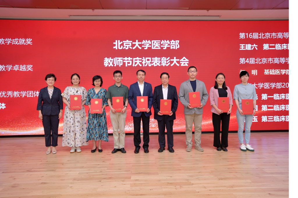 随后,乔杰、段丽萍、王维民、肖渊、刘晓光、朱树梅、张莉鑫、范春梅等医学部领导为获奖教师代表颁发了荣誉证书,并合影留念。
