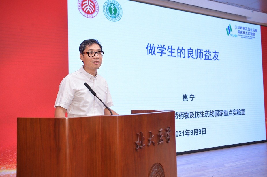 教师代表、药学院焦宁教授以“学生的良师益友”为题作主题报告。他分享了自己在北医从事教学科研工作十余年来,作为导师如何引导学生的经历和心得体会。他表示,对于学生既要严格要求,培养学生的家国情怀以及孜孜不倦的奋斗精神。同时也要了解学生的想法、兴趣,并鼓励他们勇敢的选择。焦老师在讲座中旁征博引,语言风趣幽默,向与座老师分享为师的快乐与感悟。