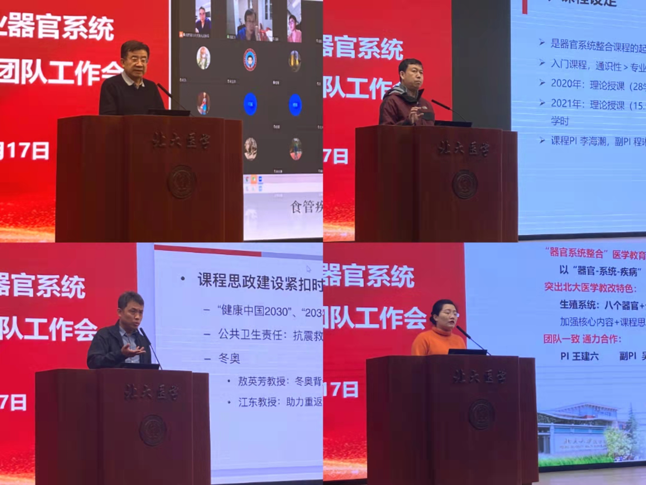 呼吸系统PI李海潮教授、内分泌与代谢系统秘书安媛老师、泌尿系统副PI吕继成教授和风湿病学PI栗占国教授分别从设计理念、师资筹备、集体备课、考核安排和教材编写等角度介绍了下学期课程的筹备情况和实施计划。