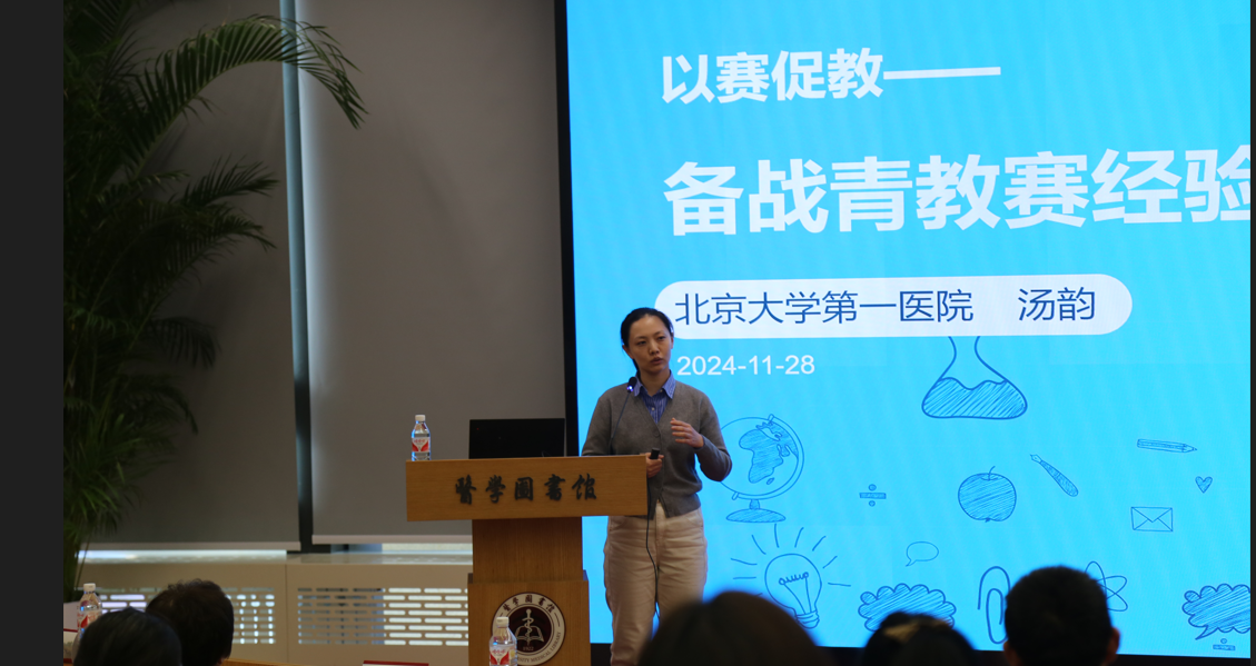 来自北京大学第一医院眼科的汤韵老师以“以赛促教”为主题,分享了从备赛到课堂展示的系统经验。她强调选题需结合教学大纲、学科优势和日常教学积累,突出人文关怀与思政教育。教案设计是核心环节,需明确教学目标、合理分配时间,确保教学逻辑清晰、重点突出。在课堂展示方面,汤老师以“小病不小瞧,绝症不绝望”为主题,通过生动案例、教具和互动设计提升课堂吸引力,启发学生深度思考,并提出有效互动策略。她将思政教育自然融入教学,以患者经历诠释医学人文精神,呼应“立德树人”的教育目标。汤老师总结道,教学比赛不仅是一场挑战,更是提升教学能力和创新实践的重要契机?。